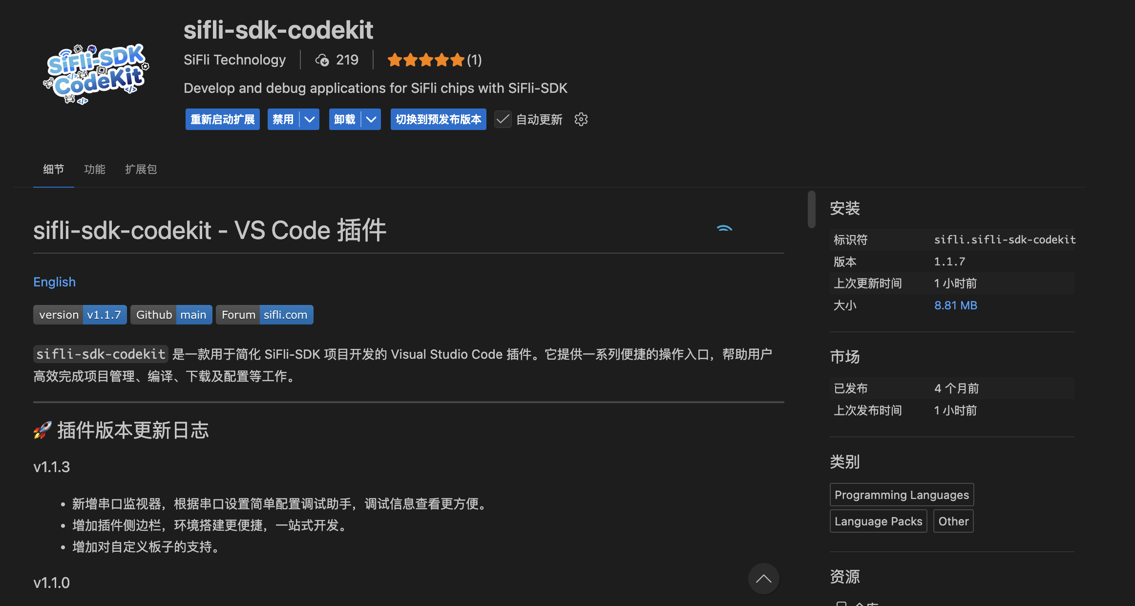 下载 Visual Studio Code (VS Code) 后,需要在 VS Code 中安装 SiFli-SDK-CodeKit 扩展。