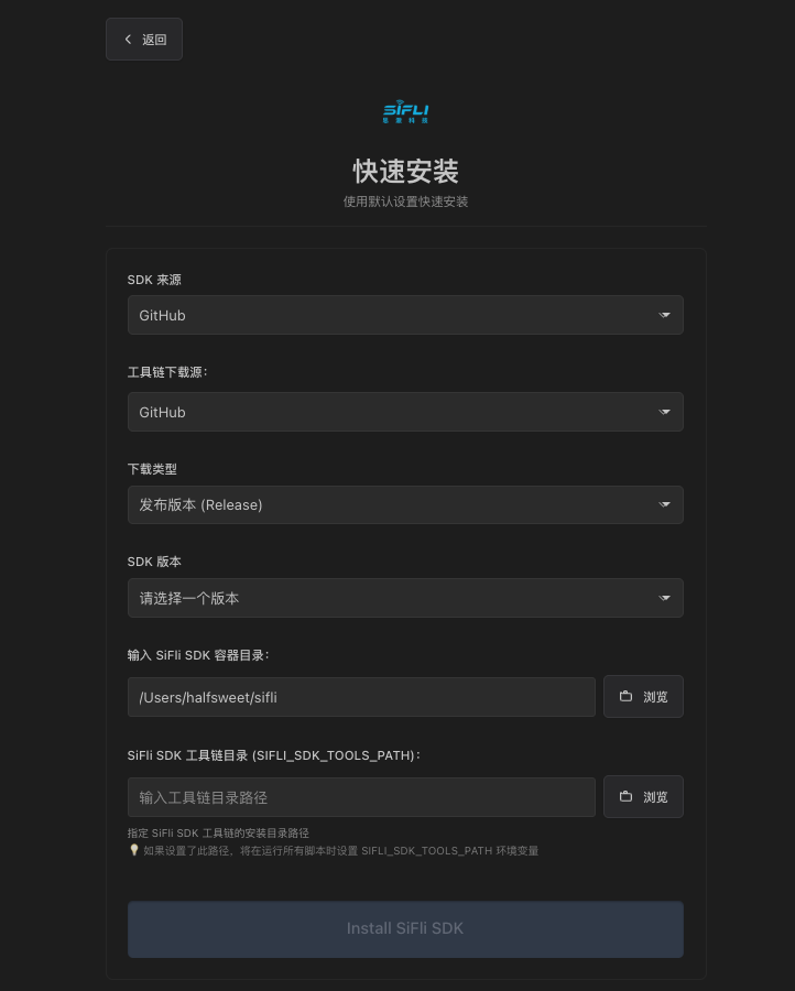 如果你在中国大陆地区,SDK 来源建议使用Gitee;工具链下载源建议选择SiFli 镜像,以获得更快的下载速度。