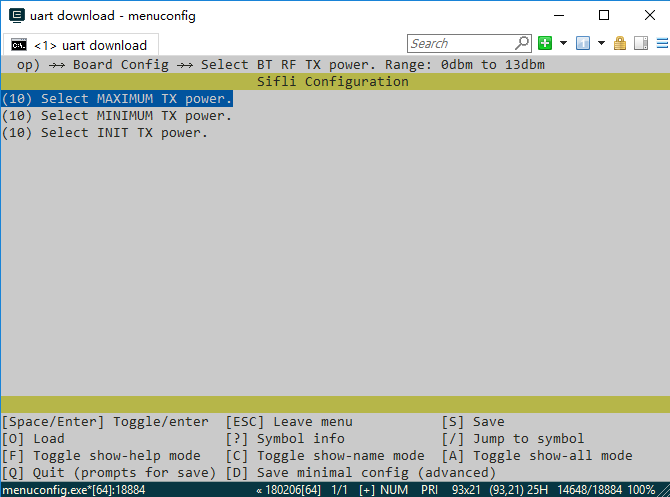 工程配置的初始发射功率为0dBm,如果需要测试 4dBm 的发射功率功耗,可以在HCPU工程目录下执行