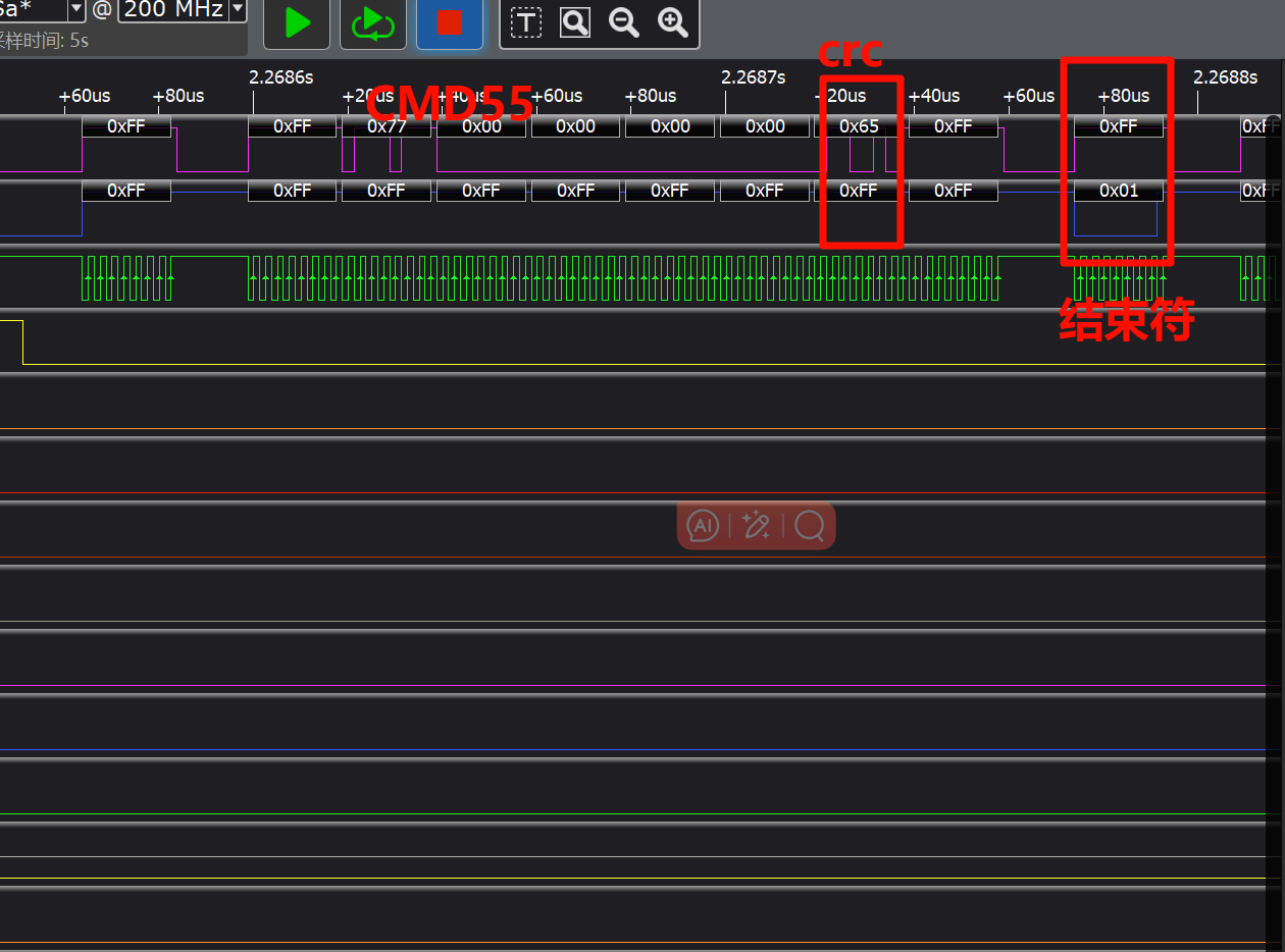 CMND55的波形(特殊指令前命令,发送ACMD类指令前 ,需要发送此指令)