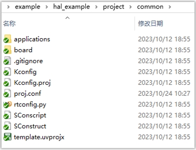 对于SF32LB52X,如果只需要开发HCPU上的程序,不使用LCPU或者使用预生成好的LCPU镜像文件,应用工程就只需要创建一个目录放置HCPU的工程文件,例如下图的hal_example示例工程