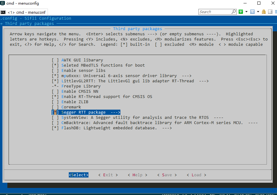 通过menuconfig,打开Segger RTT功能(它将自动注册一个名为segger的rt-device)