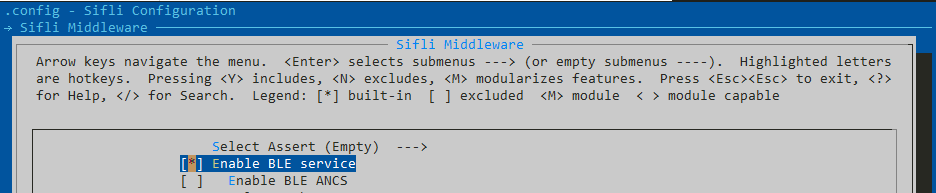 用户可以使用 menuconfig 工具启用蓝牙 LE 服务。 配置通常保存在 C 头文件中。 默认情况下,配置保存为 rtconfig.h。
