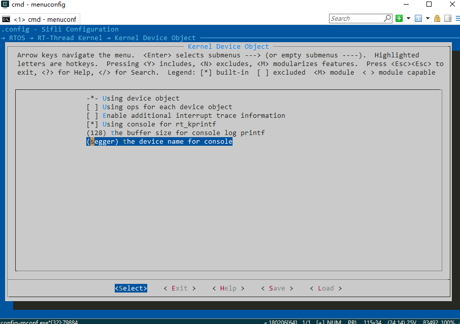 通过menuconfig,打开Segger RTT功能(它将自动注册一个名为segger的rt-device)