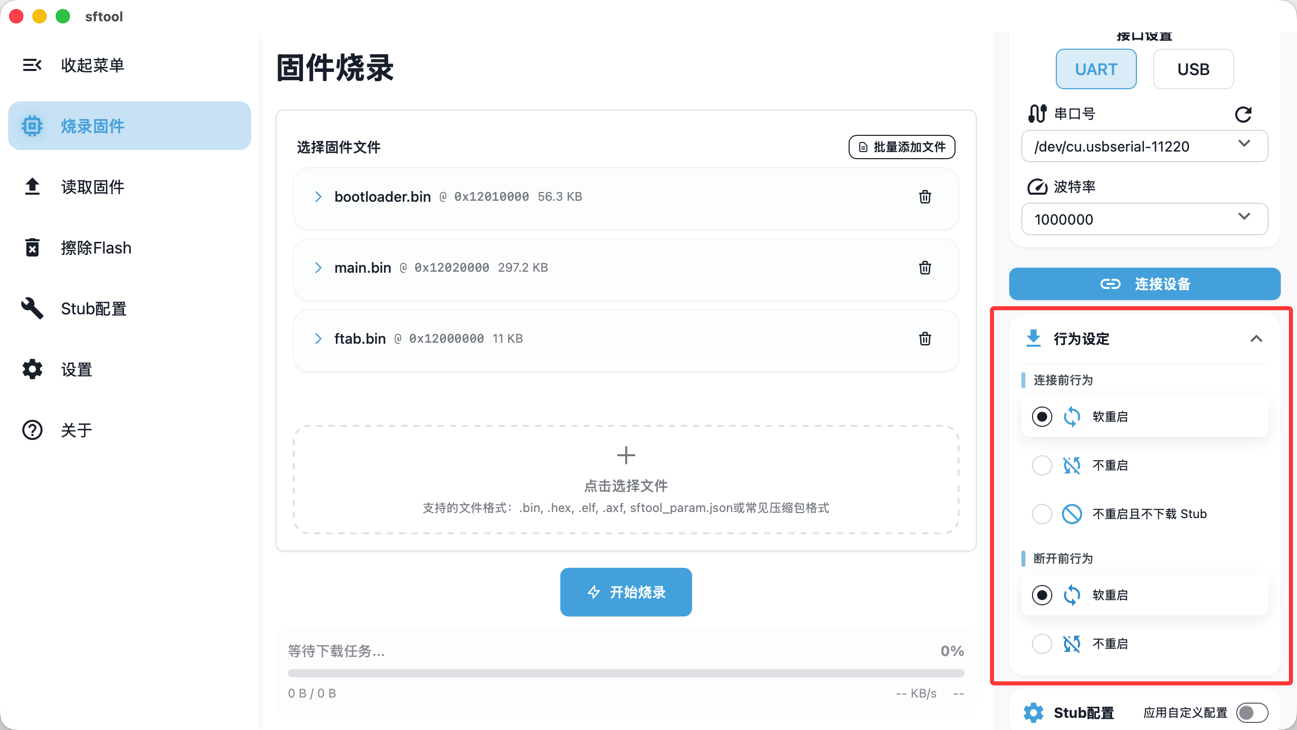 sftool-gui 为高级用户提供了深度定制选项,支持自定义硬件驱动及复杂的连接行为控制。
