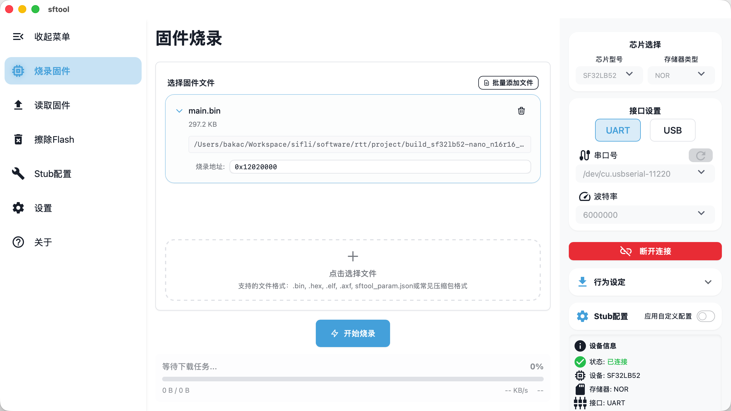 本指南详细说明了在 sftool-gui 中将固件写入 Flash 的完整操作流程,涵盖设备连接、固件选择及烧录执行。