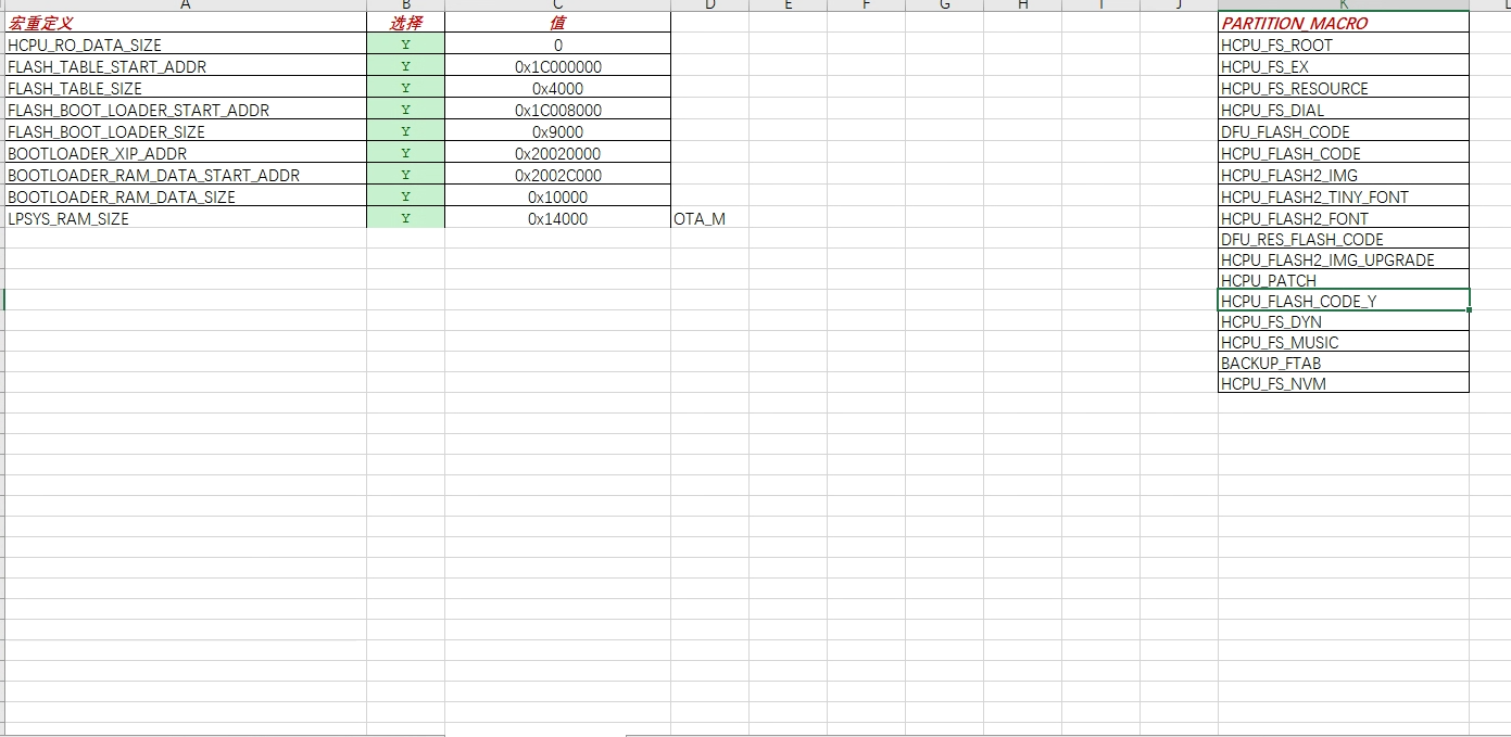 PARTITION_MACRO:分区宏定义,flash_map,h内会生成如下分区相关的宏,例如分区宏定义为HCPU_FLASH_CODE,头文件内生成的宏定义如下