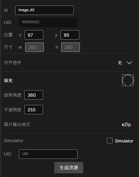UID:图像资源的唯一标识符,用于固件代码查找图片控件。系统自动生成,用户无需手动设置。