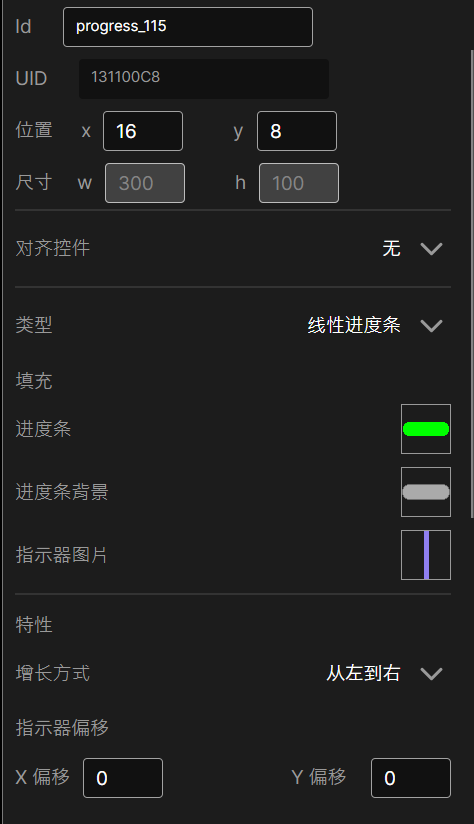 UID:进度条资源的唯一标识符,用于固件代码查找进度条控件。系统自动生成,用户无需手动设置。