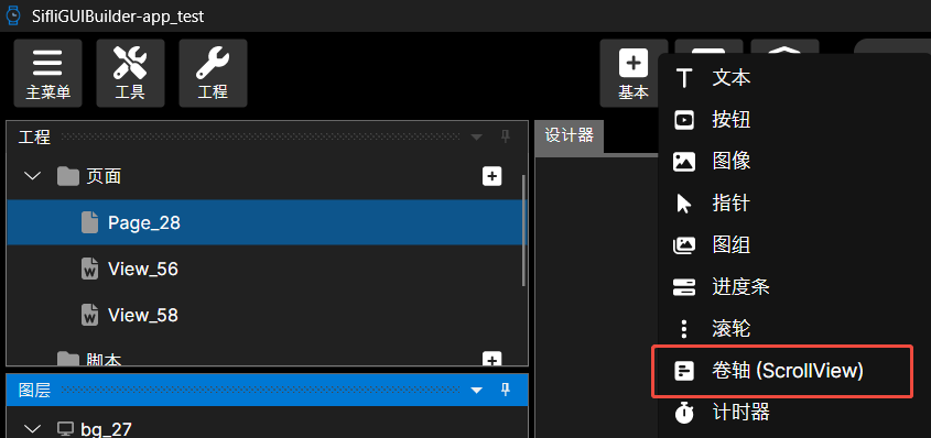 ID:滚动视图控件的唯一ID,用于固件代码查找UID,用户可以根据需求修改