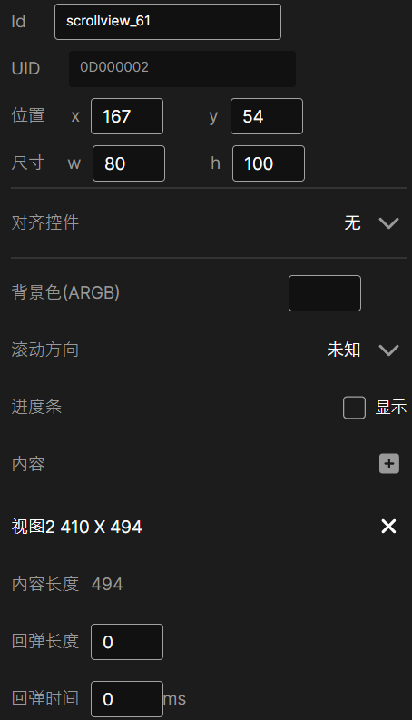 UID:滚动视图资源的唯一标识符,用于固件代码查找滚动视图控件。系统自动生成,用户无需手动设置。
