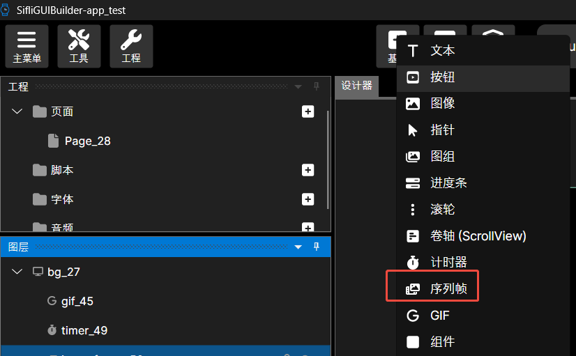 序列帧控件用于配置动画资源。用户可以设置序列帧的各种属性,如位置、播放次数、帧率、播放模式等,并生成符合要求的动画资源文件,供固件解析并使用。