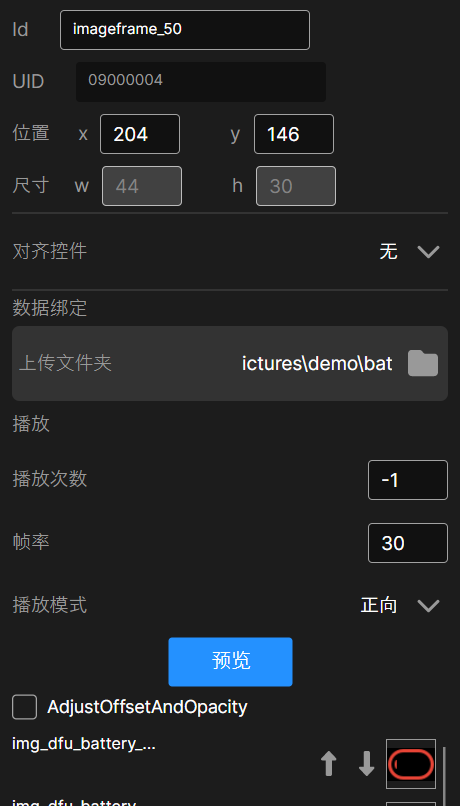 ID:序列帧控件的唯一ID,用于固件代码查找UID,用户可以根据需求修改
