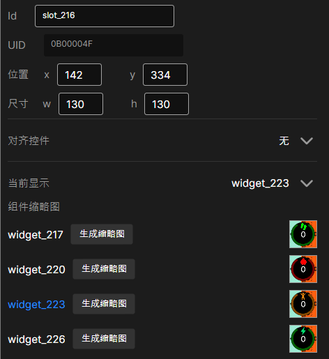 组件缩略图:显示可在容器中切换的组件列表及其缩略图,点击按钮为对应组件生成缩略图,用户也可以自行传入
