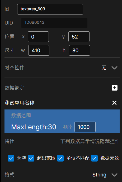 UID:文本区域资源的唯一标识符,用于固件代码查找文本区域控件。系统自动生成,用户无需手动设置。