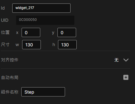 UID:组件资源的唯一标识符,用于固件代码查找组件控件。系统自动生成,用户无需手动设置。