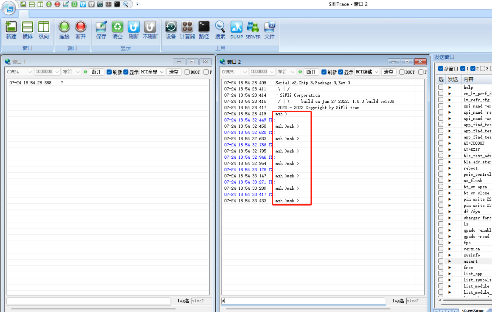 55x是接小核uart3来下载,56x/58x是通过uart4来下载。确认uart烧录口是否接正确了 在boot模式,小核烧录口,敲回车正常会返回msh