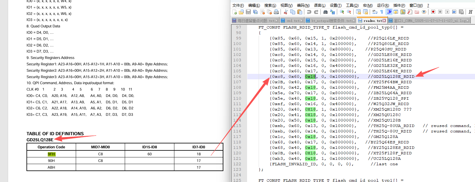 ⚠️ 特别说明我们的代码跟烧录驱动只认flash id,一定要确认Flash id。