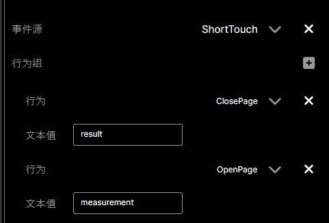 此场景下,我们在设置了跳转事件以后,还需要设置一个关闭当前页面的事件: